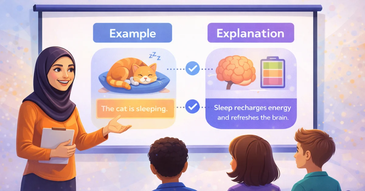 PowerPresent.AI places examples directly after explanations, ensuring a logical flow. Each example is clearly labeled and visually separated from theory, making it easier for students to apply what they have learned.